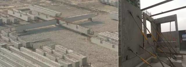 以预制框架结构为例,一层施工完毕后,先吊装上一层柱子,接着上主梁、次梁、楼板。预制构件吊装统统结束后,就开始绑扎连接部位钢筋,最后进行节点和梁板现浇层的浇筑。 上述步骤里技术要求最高的是什么? 答案是装配式构件的吊装。 为了确保吊装顺利进行,装配式构件运到现场后,需要合理安排堆放场地,方便吊装。就和搬家一样,通常都会安排好物品搬运顺序,来合理减少工作量。 这个最重要的吊装步骤是怎样操作的呢?看图! 上图最抢眼的就是梳妆镜惊现施工现场,难道各位小哥工作中还不忘臭美?哈哈,那您就错了。梳妆镜是为装配式柱吊装准备的,下部空间狭小,不便于观察,通过小小梳妆镜的反射的原理,方便下层预留钢筋与上层装配式柱孔洞的插接。 装配式叠合梁吊装 对于吊装难度较大的部位,还可以在现场进行预拼装或建造装配式展示区,起到示范作用。